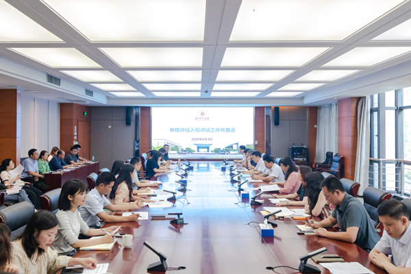 6月3日下午,学校召开审核评估入校评估工作布置会,副校长舒志定出席,党委办公室(校长办公室)、发展规划处(教育质量监测中心)、学生处、教务处、安全保卫部、信息技术中心、后勤服务中心负责人,二级学院分管教学工作副院长、分管学生工作副书记和专家联络员参加会议。