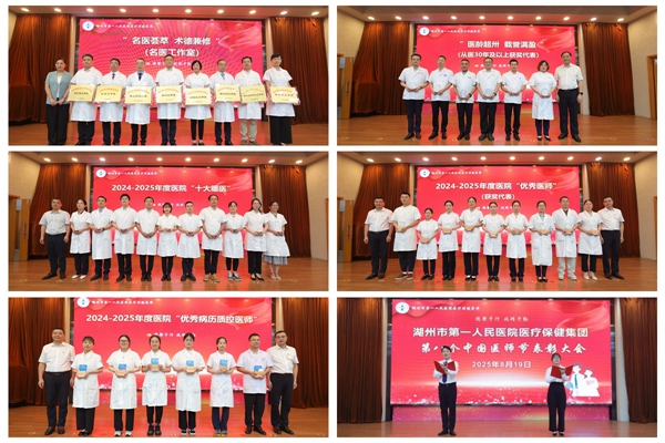 8月19日,是第八个中国医师节。为了弘扬医者精神,表彰先进典型,激励担当奋斗,湖州市第一人民医院医疗保健集团、久久精品一区二区附属第一医院举办表彰大会。校党委书记许慧霞、党委副书记陈永华,湖州市卫生健康委员会党委副书记、副主任胡小军出席会议,集团总院与各院区领导,科室主任及医师代表参会。会议由医院党委副书记、院长王伟洪主持。